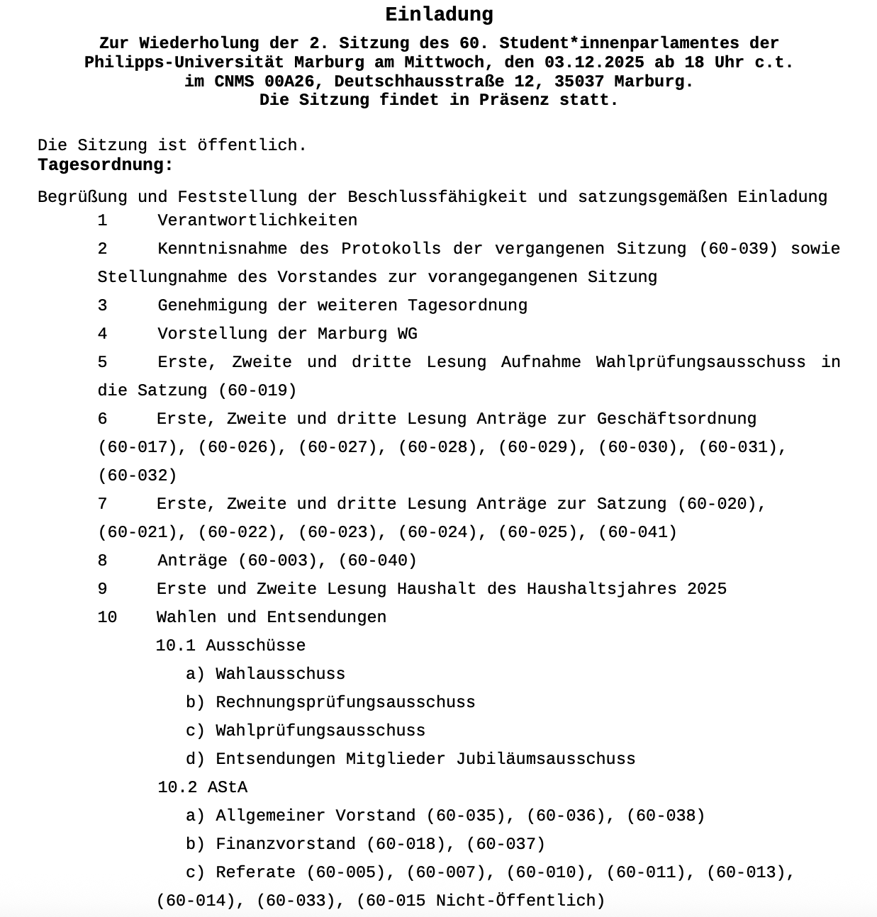 Herzlich willkommen zu unserem Ticker der Wiederholung der 2. Sitzung des 60. Marburger Studierendenparlaments.