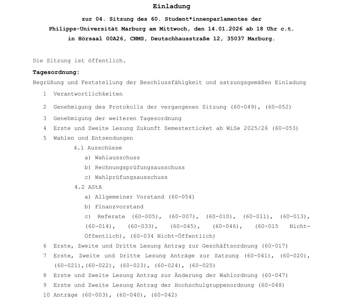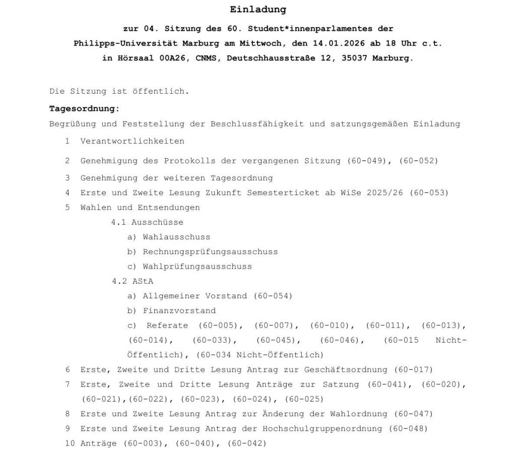 Herzlich willkommen zu unserem Ticker der 4. Sitzung des 60. Marburger Studierendenparlaments.