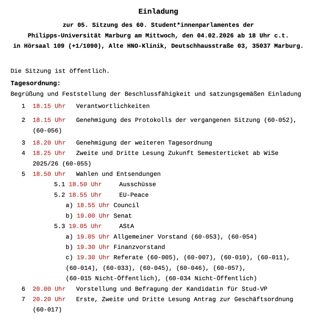 Herzlich willkommen zu unserem Ticker der 5. Sitzung des 60. Marburger Studierendenparlaments.